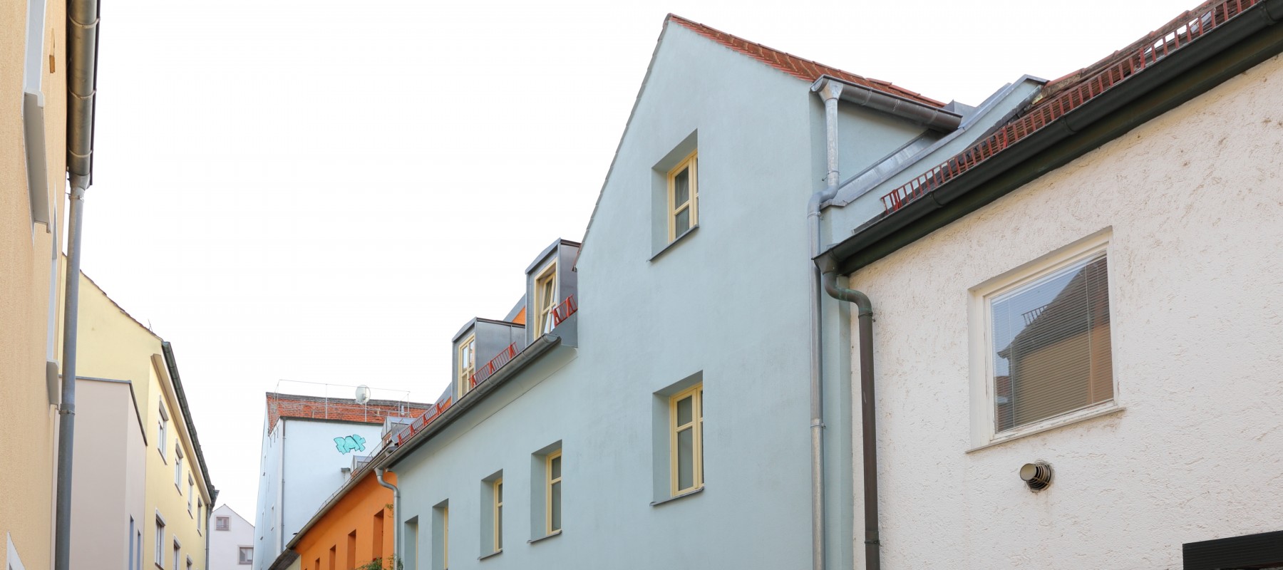 Wesentliche Teile des Gebäudes wurden erhalten. Im Nord-Osten wurde das bereits bestehende Zwerchhaus herausgearbeitet und nimmt durch die unterschiedliche Höhenstaffelung die Charakteristig der Gasse auf .