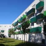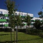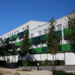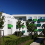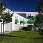 Das Studentenwohnheim UNI Thoma mit seinen 138 Appartements bildet den Abschluss der „Grünen Mitte“ nach Norden zur Ludwig-Thoma-Straße. Kommend von der Autobahnausfahrt stellt es das Stadtportal von Kumpfmühl dar. Der Entwurf nimmt im Süden mit seiner 2-geschossigkeit die Maßstäblichkeit der angrenzenden, unter Denkmalschutz stehende Einfamilienhäuser der „ Grünen Mitte“ auf. Durch seine Staffelung gliedert es sich hervorragend in den Geländeverlauf ein. Im Norden zur Ludwig-Thoma-Straße hingegen gibt er sich markant als Stadtportal mit bis zu 4 Geschossen. Der Laubengang bildet eine ornamenthafte, strenge Fassade zu den Emissionsquellen. Nach Süden verzahnt sich das Gebäude mit seinen angepassten Balkone mit dem grünen Gartenhof.